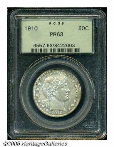 <B>1910<50C> PR63 PCGS.</B></I> This is an important opportunity, given the under-recognized scarcity of related business strike examples. Sharply struck with brilliant mirrored fields and light cameo contrast. Both sides have pale ivory color with wispy champagne overtones.