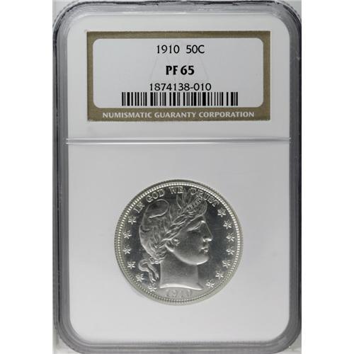 1910 50C PR65 NGC. A dazzling, deeply mirrored Gem pro