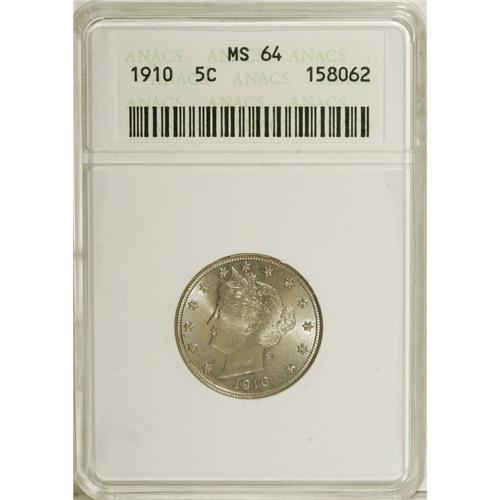 1910 5C MS64 ANACS. NGC Census: (161/76). PCGS Pop