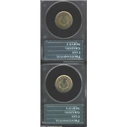 Coins sold referencing a third-party grading service (“Certified Coins”) are sold “as is” without any express or implied warranty, except for a guarantee by Auctioneer that the Certified Coins are genuine. Certain warranties may be available from the grading services and the bidder is referred to the following services for details of any such warranties: ANACS, P.O. Box 182141, Columbus, Ohio 43218-2141; Hallmark Grading Service, Inc., P.O. Box 2879, Woburn, MA 01888; International Numismatic Society (INS), P.O. Box 66555, Washington, DC 20035; Numismatic Certification Institute, Inc., Heritage Plaza, Highland Park Village, Dallas, Texas 75205-2788; Numismatic Guaranty Corporation (NGC), P.O. Box 1776, Parsippany, NJ 07045; Professional Coin Grading Service (PCGS), P.O. Box 9458, Newport Beach, CA 92658; ICG, 7901 East Bellvue Ave., Suite 50, Englewood, CO 80111.