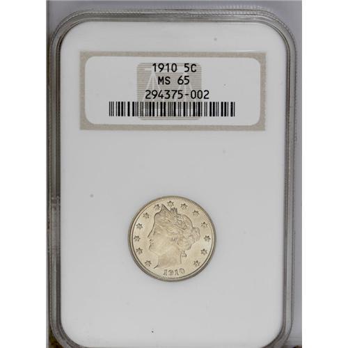 1910 5C MS65 NGC. Fully brilliant and highly lustrous 1910[5C] MS65 NGC.