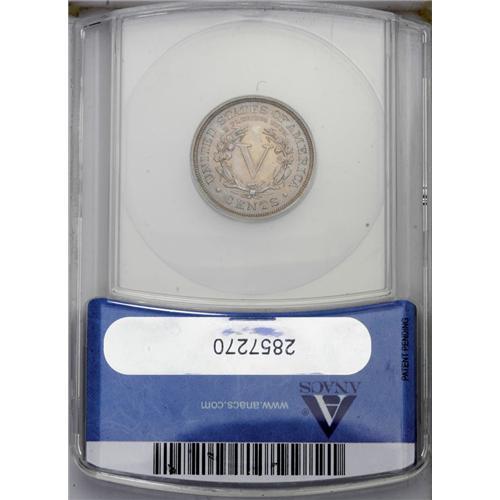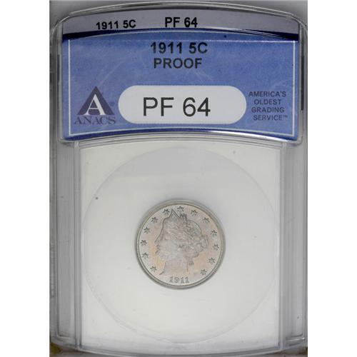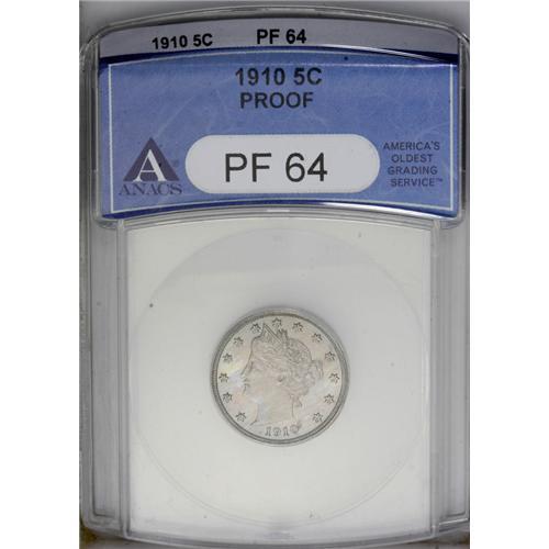 1910 5C PR64 ANACS, ice-blue, peach, and gold hues, a 1910[5C] PR64 ANACS,