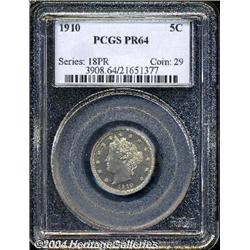 <B>1910<5C> PR64 PCGS.</B></I> Fully struck with pleasing olive coloration, no large or distracting surface marks, and distinctly non-reflective fields that seemingly prevent this candidate from being graded as a Gem. <BR><BR><B>Important notice:</B> Heritage usually auctions material at the rate of 200-250 lots per hour. On some occasions eBay Live bid software or the Internet may not be able to keep up with the pace of the auction. We recommend placing a realistic absentee bid now as insurance to avoid disappointment. Occasionally the auctioneer may eliminate or reject an eBay Live bid, and the auctioneer may also reopen a lot after the close of the eBay live bidding (usually because we missed an audience bid), and may reject your bid even if it shows you as the winning bidder. By bidding via eBay Live, you agree that Heritage may award the lot to another bidder at its sole discretion under the circumstances described above or any other reasonable circumstances. Since eBay bids are not shown to us until we open the lot on the floor, we treat those bids just like floor bids. In most cases the floor responds before the eBay bid is presented to us, due to Internet lag time, so for consistency we have made it a policy that floor bids are always considered first over tie eBay live bids. Also please note that all Heritage lots purchased through eBay Live carry a 20% Buyer's Premium. Please make sure you read the Terms and Conditions before you bid.