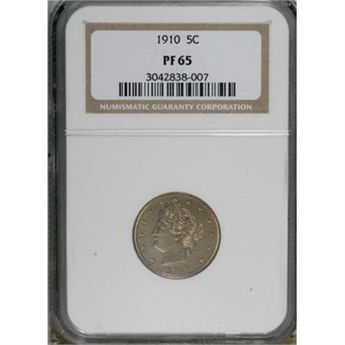<B>1910 5C PR65 NGC.</B></I> NGC Census: (180/175). PCGS Population (132/110). Mintage: 2,405. Numismedia Wsl. Price for NGC/PCGS coin in PR65: $495. (#3908)<BR><BR><B>Coin Engraver:</B> Charles E. Barber<BR><BR><b>Shipping:</b> Coins & Currency (<a target="_blank" href="http://www.heritageauctions.com/common/shipping.php">view shipping information</a>)