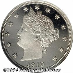 <B>1910<5C> PR66 Deep Cameo NGC.</B></I> A magnificent example of what a proof should look like. The coin has sandblast features virtually floating on a sea of crystal fields. The details are needle-sharp and well defined, with no indications of weakness. The coin has retained its silver and white original color and is worthy of a strong bid. <BR><BR><B>Important notice:</B> Heritage usually auctions material at the rate of 200-250 lots per hour. On some occasions eBay Live bid software or the Internet may not be able to keep up with the pace of the auction. We recommend placing a realistic absentee bid now as insurance to avoid disappointment. Occasionally the auctioneer may eliminate or reject an eBay Live bid, and the auctioneer may also reopen a lot after the close of the eBay live bidding (usually because we missed an audience bid), and may reject your bid even if it shows you as the winning bidder. By bidding via eBay Live, you agree that Heritage may award the lot to another bidder at its sole discretion under the circumstances described above or any other reasonable circumstances. Since eBay bids are not shown to us until we open the lot on the floor, we treat those bids just like floor bids. In most cases the floor responds before the eBay bid is presented to us, due to Internet lag time, so for consistency we have made it a policy that floor bids are always considered first over tie eBay live bids. Also please note that all Heritage lots purchased through eBay Live carry a 20% Buyer's Premium. Please make sure you read the Terms and Conditions before you bid.