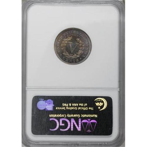 <B>1910 5C PR66 NGC.</B></I> This specimen shows excellent preservation, but the impressive and spectacular patina over each side steals the show. Vibrant peach, silver-blue, and violet shadings drape softly shimmering surfaces.<BR><I>From The New York Eye Appeal Collection, Part Three.</B></I><BR><BR><B>Coin Engraver:</B> Charles E. Barber<BR><BR><b>Shipping:</b> Coins & Currency (<a target="_blank" href="http://www.heritageauctions.com/common/shipping.php">view shipping information</a>)