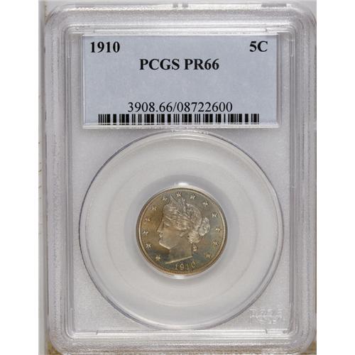 1910 5C PR66 PCGS. Olive-gold patina shares the obvers