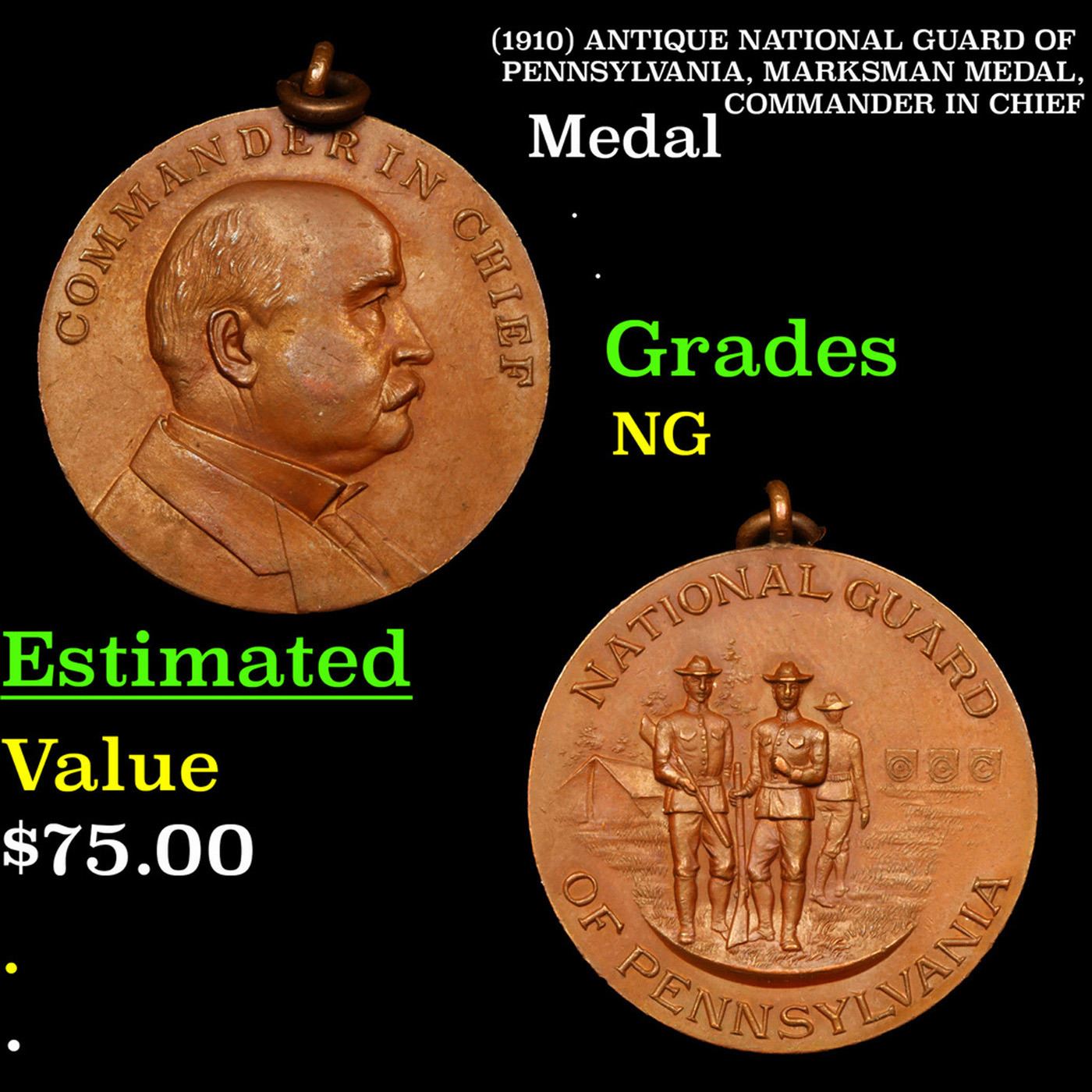 (1910) ANTIQUE NATIONAL GUARD OF PENNSYLVANIA, MARKSMAN MEDAL, COMMANDER IN CHIEF Grades NG