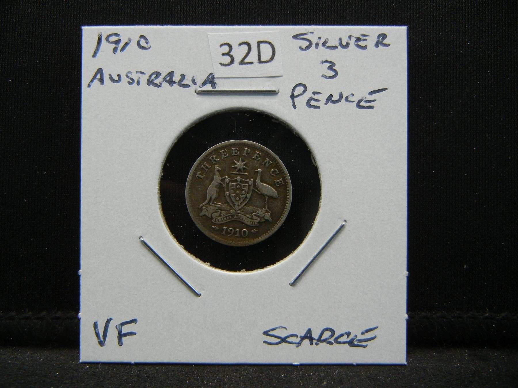 1910 Australia Silver 3 Pence. VF. Scarce.