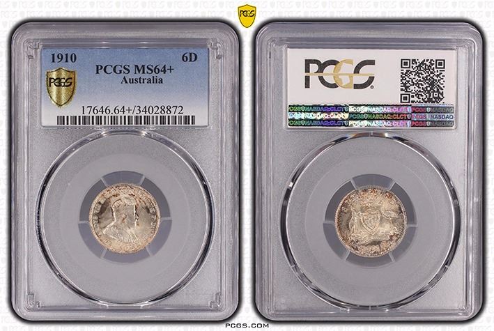 1910 Australian Sixpence - PCGS MS 64+