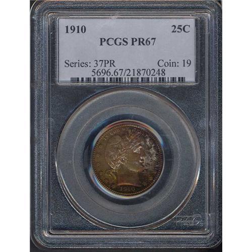 From an original proof mintage of just 551 coins, this yellow and grey toned beauty has both the look and the quality for either a type collector or advanced investor. R5 rare in this condition, one of forty with only fourteen better, the date bids $3460 and trends $5500.