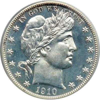 1910 Barber Half Dollar. PCGS graded Proof 63. Only 551 Proofs minted. Mostly untoned and a lovely choice Proof of this early 20th vintage. Noteworthy for the light satin frost covering all devices, including the tops of the letters in the legends. Barber Half Dollar Proofs show all their fine details (PCGS # 6557) .