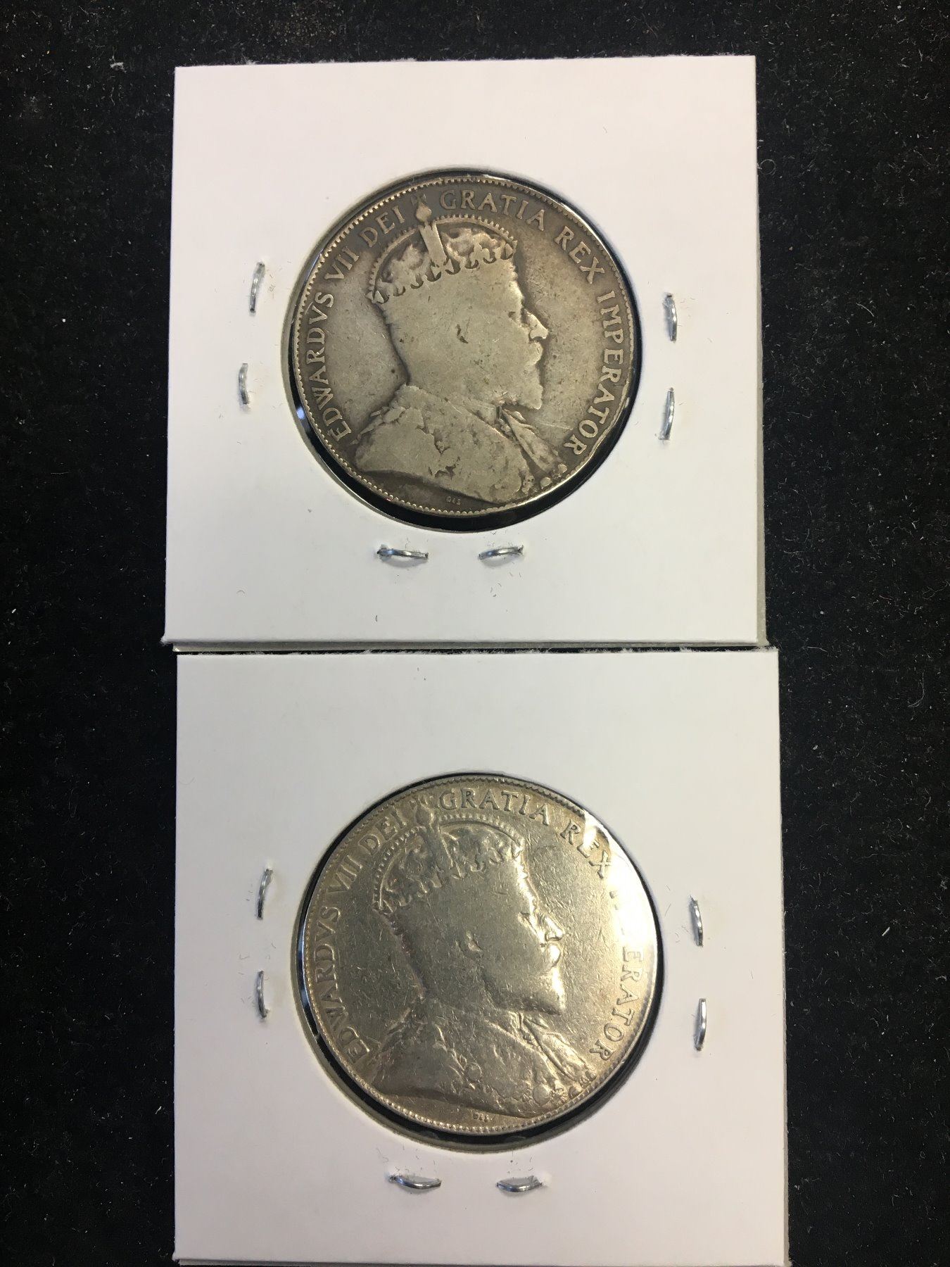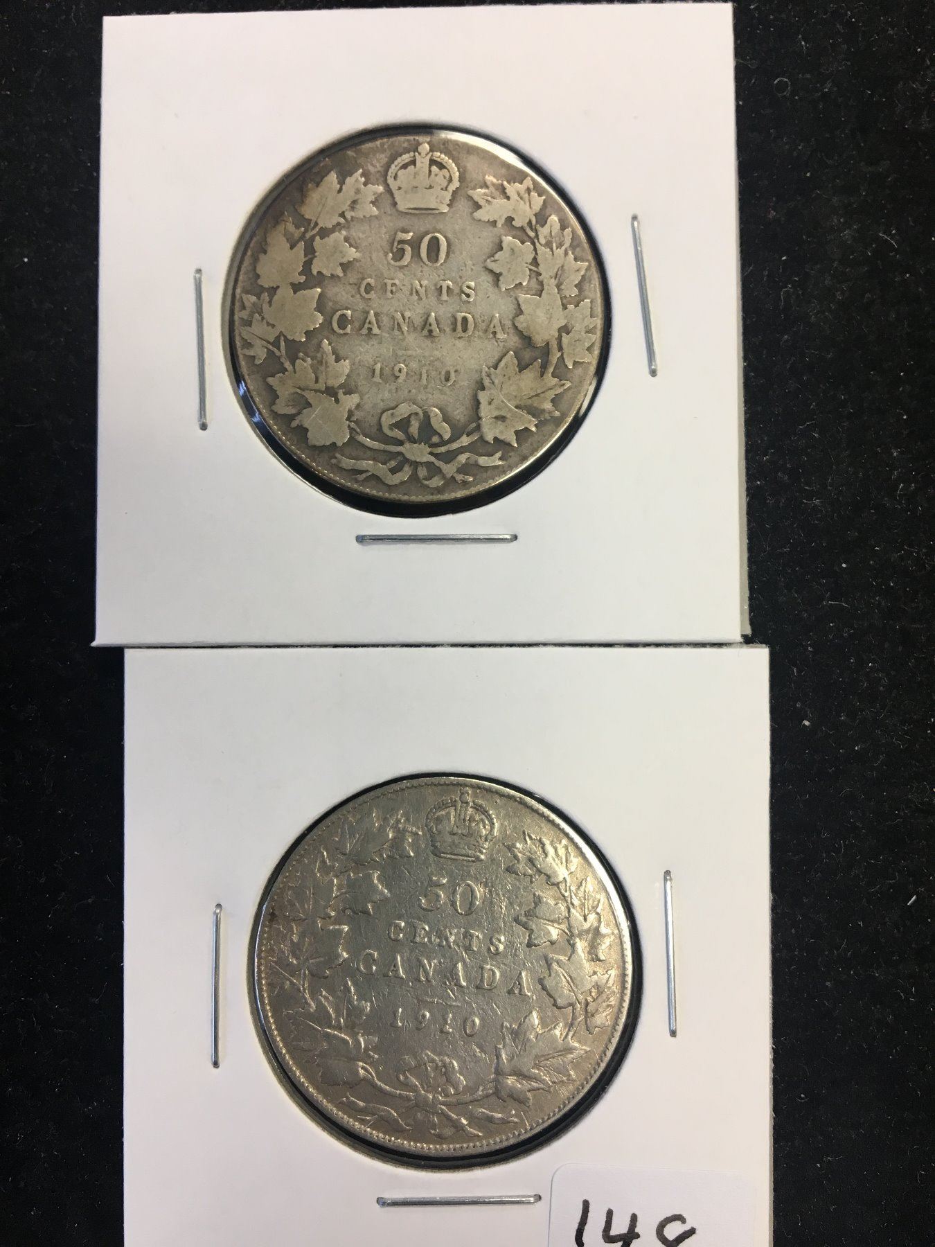 NICE LOT OF 2 CANADA 1910 50 CENTS.EDWARD LEAVES AND VICTORIA LEAVES.GRADES VG-8