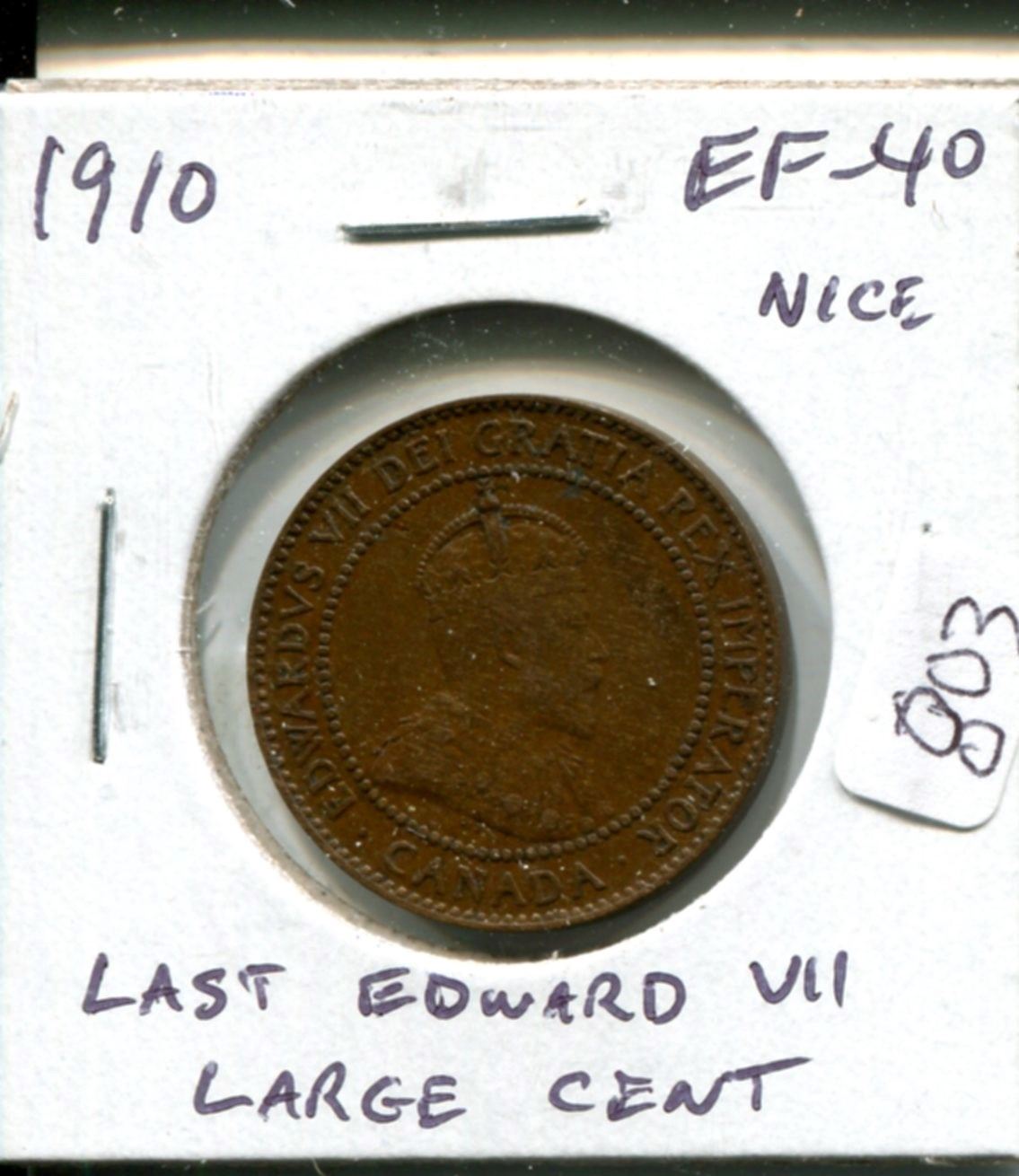 1910 Canadian Large Cent. The last cent minted for Edward VII. EF-40. Nice.