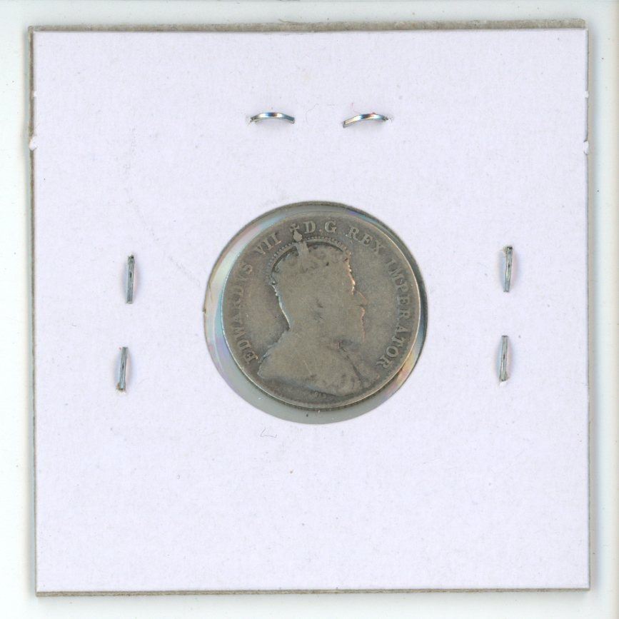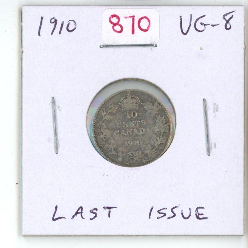 1910 Canadian Silver 10 Cents. Last issue for King Edward VII. VG-8.