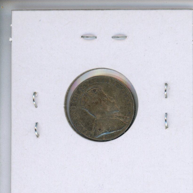 1910 Canadian Silver 10 Cents. Last issue of Edward VII. F-12.