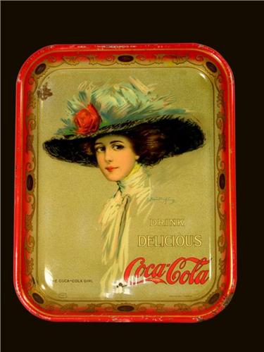 1910 Coca Cola Tin Serving Tray. Minor rim chips, rust and paint loss at 6:00 and 11:00 otherwise very good condition. 10 1/2 X 13 1/4 inches.