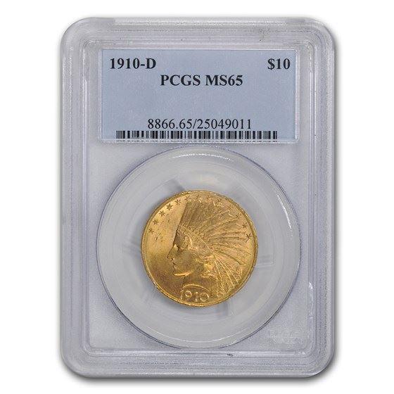 One piece 1910-D $10 Indian Gold Eagle MS-65 PCGS