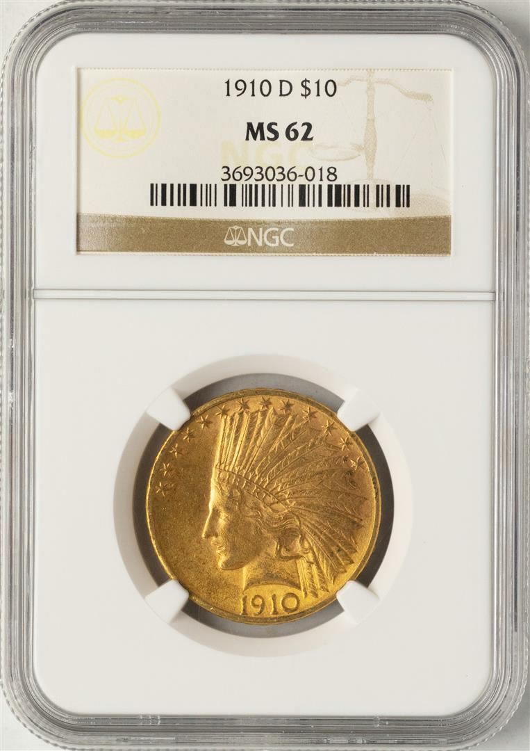 One 1910-D $10 Indian Head Eagle Gold Coin NGC MS62. NGC Certified.