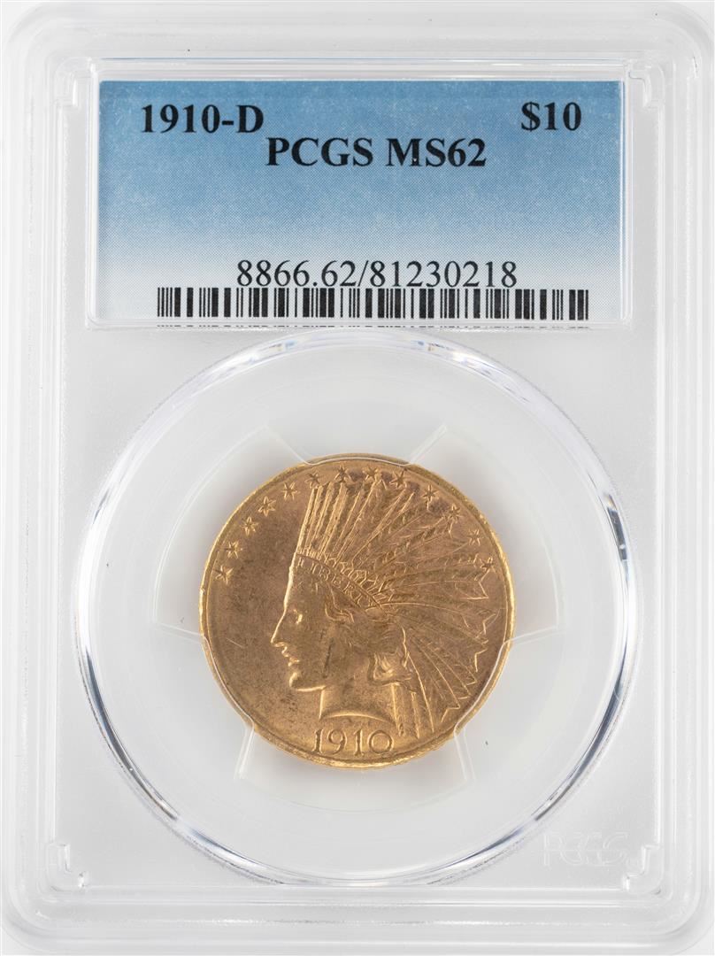 One 1910-D $10 Indian Head Eagle Gold Coin PCGS MS62. PCGS Graded.