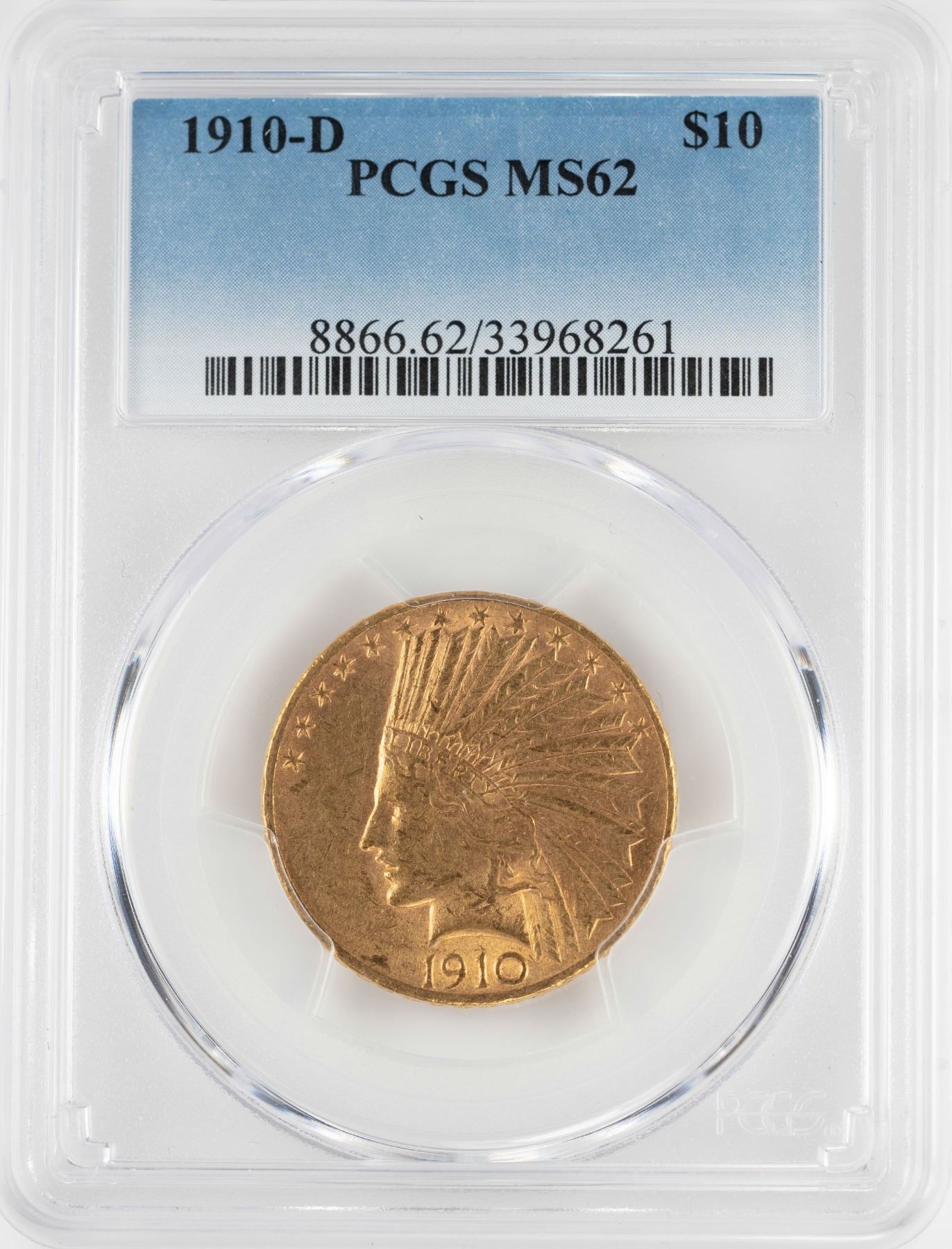 One 1910-D $10 Indian Head Eagle Gold Coin PCGS MS62.