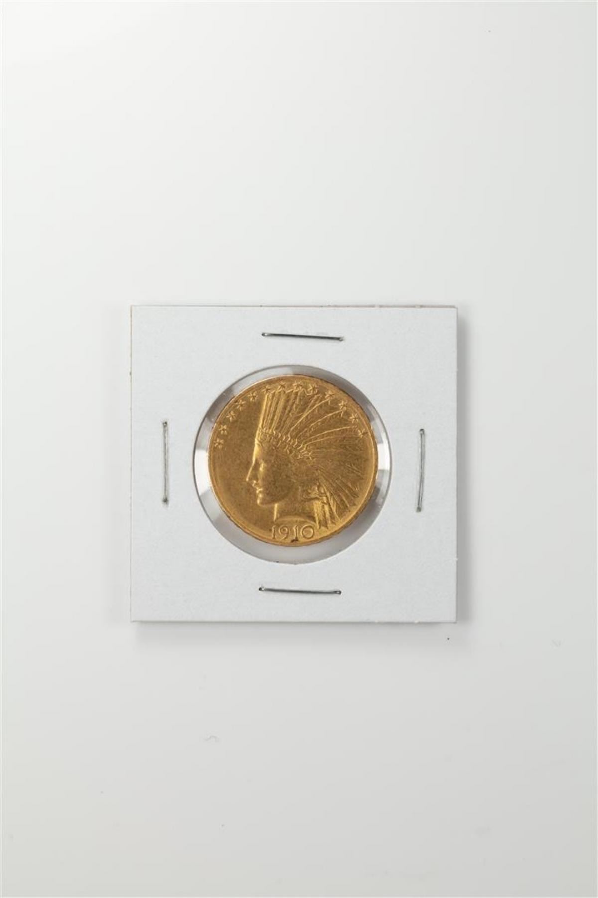 One 1910-D $10 Indian Head Eagle Gold Coin.