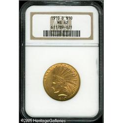 <B>1910-D $10 MS62 NGC.</B></I> Orange and greenish-gold colors enrich this lustrous and attractively preserved Indian Eagle. A satisfactory Uncirculated type coin. Lot:8858