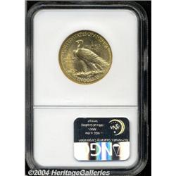 <B>1910-D<$10> MS63 NGC.</B></I> Well struck with bright luster over minimally abraded surfaces. Perhaps a candidate for a higher grade. <BR><BR><B>Important notice:</B> Heritage usually auctions material at the rate of 200-250 lots per hour. On some occasions eBay Live bid software or the Internet may not be able to keep up with the pace of the auction. We recommend placing a realistic absentee bid now as insurance to avoid disappointment. Occasionally the auctioneer may eliminate or reject an eBay Live bid, and the auctioneer may also reopen a lot after the close of the eBay live bidding (usually because we missed an audience bid), and may reject your bid even if it shows you as the winning bidder. By bidding via eBay Live, you agree that Heritage may award the lot to another bidder at its sole discretion under the circumstances described above or any other reasonable circumstances. Since eBay bids are not shown to us until we open the lot on the floor, we treat those bids just like floor bids. In most cases the floor responds before the eBay bid is presented to us, due to Internet lag time, so for consistency we have made it a policy that floor bids are always considered first over tie eBay live bids. Also please note that all Heritage lots purchased through eBay Live carry a 20% Buyer's Premium. Please make sure you read the Terms and Conditions before you bid.