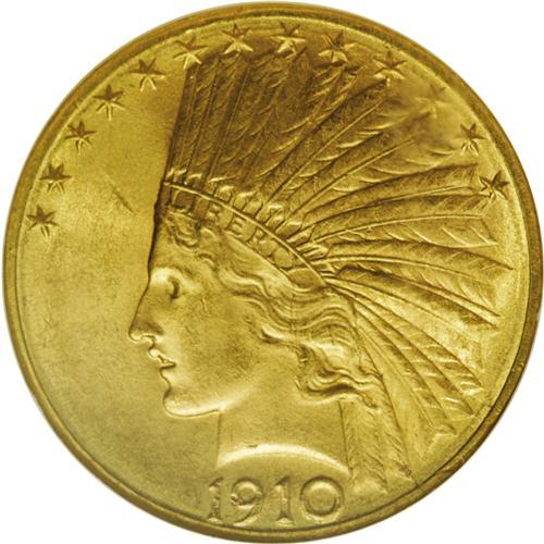 <B>1910-D<$10> MS64 NGC.</B></I> The vibrant peach-gold surfaces are void of mentionable marks, and the eye appeal is formidable for the designated grade. A premium quality gold type coin. The Denver Mint would only strike three additional ten dollar dates: the 1911-D, 1914-D, and 1984-D Olympic.