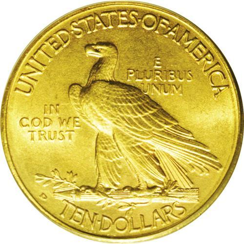 <B>1910-D<$10> MS64 PCGS.</B></I> This is a beautiful coin, with a wonderful, satiny matte finish and slightly subdued yellow-golden color. The striking is adequate, and quite good for this type, while a couple of marks on the reverse are likely all that prohibited the Gem grade designation.