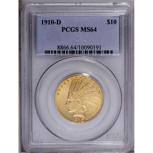 1910-D $10 MS64 PCGS. This is a beautiful coin, with a 1910-D[$10] MS64 PCGS.