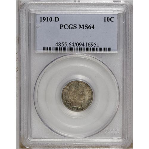 1910-D 10C MS64 PCGS. Lustrous beneath subdued violet