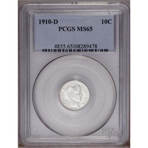 <B>1910-D<10C> MS65 PCGS.</B></I> An underappreciated issue in any Mint State grade, this Gem '10-D is essentially brilliant and utterly frosty with shimmering luster in the fields.