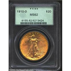 1910-D $20 MS62 PCGS. Both sides of this orange-gold example are sharply impressed with uncommonly s
