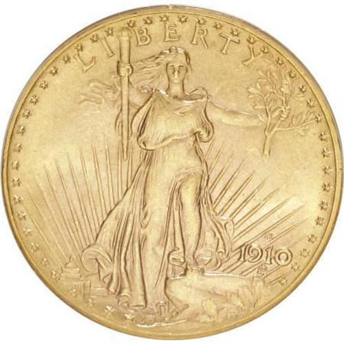<B>1910-D $20 MS63 PCGS.</B></I> PCGS Population (1306/2431). NGC Census: (1736/1929). Mintage: 429,000. Numismedia Wsl. Price for NGC/PCGS coin in MS63: $1,115. (#9155)<BR><BR><B>Coin Engraver:</B> Augustus Saint-Gaudens<BR><BR><b>Shipping:</b> Coins & Currency (<a target="_blank" href="http://www.heritageauctions.com/common/shipping.php">view shipping information</a>)