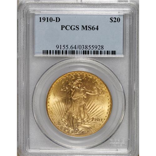 1910-D $20 MS64 PCGS. Great luster is noted on both si