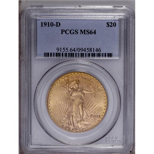 <B>1910-D<$20> MS64 PCGS.</B></I> One or two wispy abrasions bar this otherwise smooth, reddish-gold example from an even higher grade. Nicely defined for the series.