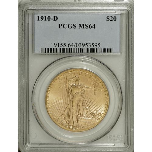 1910-D $20 MS64 PCGS. Potent luster and a penetrating