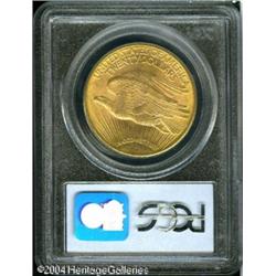 1910-D $20 MS64 PCGS. The Capitol building is full <B>1910-D $20 MS64 PCGS.</B></I> The Capitol building is fully brought up by the dies, and Liberty's nose and fingers are also nicely defined. Booming luster and attractive preservation ensure the quality of this Choice Saint-Gaudens. <BR><BR><B>Important notice:</B> Heritage usually auctions material at the rate of 200-250 lots per hour. On some occasions eBay Live bid software or the Internet may not be able to keep up with the pace of the auction. We recommend placing a realistic absentee bid now as insurance to avoid disappointment. Occasionally the auctioneer may eliminate or reject an eBay Live bid, and the auctioneer may also reopen a lot after the close of the eBay live bidding (usually because we missed an audience bid), and may reject your bid even if it shows you as the winning bidder. By bidding via eBay Live, you agree that Heritage may award the lot to another bidder at its sole discretion under the circumstances described above or any other reasonable circumstances. Since eBay bids are not shown to us until we open the lot on the floor, we treat those bids just like floor bids. In most cases the floor responds before the eBay bid is presented to us, due to Internet lag time, so for consistency we have made it a policy that floor bids are always considered first over tie eBay live bids. Also please note that all Heritage lots purchased through eBay Live carry a 20% Buyer's Premium. Please make sure you read the Terms and Conditions before you bid. This lot is being auctioned in conjunction with a live floor auction by Heritage Galleries & Auctioneers. All final auction and invoice information will be supplied by Heritage Galleries & Auctioneers, and all other information should be considered preliminary. Lot:7108
