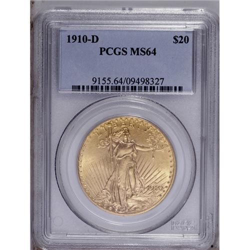 <B>1910-D<$20> MS64 PCGS.</B></I> This bright and highly lustrous double eagle with a beautiful reverse and a few light obverse field marks. A pre-1920 Arabic date Saint-Gaudens collection is both impressive and affordable.