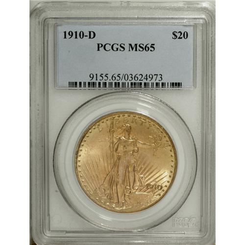 1910-D $20 MS65 PCGS. A lustrous and solidly struck ex
