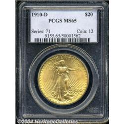 <table><tbody><tr><td><table> <TR><TD width="100%"><TABLE cellSpacing=1 cellPadding=3 width="100%" border=0><TBODY><TR><TD width="100%" bgColor=#79735c><FONT face=arial color=#ffffff size=3><B>Description</B> </FONT></TD></TR><TR><TD width="100%" bgColor=#ffffff><FONT face=arial size=2><B>1910-D $20 MS65 PCGS.</B></I> A superior example of this scarcer D-mint issue, this lovely Gem radiates glowing luster and shows just a few small contact marks, on the reverse. Only a couple of moderate abrasions, on the obverse, prevent an even loftier grade designation. </FONT></TD></TR></TBODY></TABLE></TD></TR></TBODY></TABLE><BR><A name=PricesRealized></A><TABLE cellSpacing=0 cellPadding=0 width="100%" bgColor=#000000 border=0><TBODY><TR><TD width="100%"><TABLE cellSpacing=1 cellPadding=3 width="100%" border=0><TBODY><TR><TD width="100%" bgColor=#79735c><A name=PR><FONT face=arial color=#ffffff size=3><B>Previous Prices from Heritage Auctions</B> </FONT></A></TD></TR><TR><TD bgColor=#f6f6ed><TABLE cellSpacing=0 cellPadding=0 width="100%" border=1><TBODY><TR><TD align=middle width="33%"><B>Date</B></TD><TD align=middle width="33%"><B>Service</B></TD><TD align=middle width="33%"><B>Price</B></TD></TR><TR bgColor=whitesmoke><TD width="33%"><B>08/26/2003</B></TD><TD width="33%">PCGS</TD><TD width="33%">$2,645.00</TD></TR><TR bgColor=whitesmoke><TD width="33%"><B>08/26/2003</B></TD><TD width="33%">PCGS</TD><TD width="33%">$2,645.00</TD></TR><TR bgColor=whitesmoke><TD width="33%"><B>08/19/2003</B></TD><TD width="33%">NGC</TD><TD width="33%">$2,875.00</TD></TR><TR bgColor=whitesmoke><TD width="33%"><B>05/06/2003</B></TD><TD width="33%">NGC</TD><TD width="33%">$2,817.50</TD></TR><TR bgColor=whitesmoke><TD width="33%"><B>05/06/2003</B></TD><TD width="33%">NGC</TD><TD width="33%">$2,817.50</TD></TR><TR bgColor=whitesmoke><TD width="33%"><B>11/05/2002</B></TD><TD width="33%">NGC</TD><TD width="33%">$2,587.50</TD></TR><TR bgColor=whitesmoke><TD width="33%"><B>06/08/2002</B></TD><TD width="33%">PCGS</TD><TD width="33%">$2,300.00</TD></TR><TR bgColor=whitesmoke><TD width="33%"><B>06/08/2002</B></TD><TD width="33%">PCGS</TD><TD width="33%">$2,300.00</TD></TR><TR bgColor=whitesmoke><TD width="33%"><B>06/08/2002</B></TD><TD width="33%">PCGS</TD><TD width="33%">$2,472.50</TD></TR><TR bgColor=whitesmoke><TD width="33%"><B>01/12/2002</B></TD><TD width="33%">PCGS</TD><TD width="33%">$2,300.00</TD></TR><TR bgColor=whitesmoke><TD width="33%"><B>01/12/2002</B></TD><TD width="33%">PCGS</TD><TD width="33%">$2,300.00</TD></TR><TR bgColor=whitesmoke><TD width="33%"><B>05/31/2001</B></TD><TD width="33%">PCGS</TD><TD width="33%">$1,955.00</TD></TR><TR bgColor=whitesmoke><TD width="33%"><B>02/23/2001</B></TD><TD width="33%">NGC</TD><TD width="33%">$1,725.00</TD></TR><TR bgColor=whitesmoke><TD width="33%"><B>02/23/2001</B></TD><TD width="33%">NGC</TD><TD width="33%">$1,725.00</TD></TR><TR bgColor=whitesmoke><TD width="33%"><B>02/23/2001</B></TD><TD width="33%">PCGS</TD><TD width="33%">$1,955.00</TD></TR><TR bgColor=whitesmoke><TD width="33%"><B>02/23/2001</B></TD><TD width="33%">PCGS</TD><TD width="33%">$1,955.00</TD></TR><TR bgColor=whitesmoke><TD width="33%"><B>02/23/2001</B></TD><TD width="33%">PCGS</TD><TD width="33%">$1,955.00</TD></TR><TR bgColor=whitesmoke><TD width="33%"><B>01/07/2000</B></TD><TD width="33%">PCGS</TD><TD width="33%">$2,645.00</TD></TR><TR bgColor=whitesmoke><TD width="33%"><B>09/26/1998</B></TD><TD width="33%">NGC</TD><TD width="33%">$2,875.00</TD></TR><TR bgColor=whitesmoke><TD width="33%"><B>09/26/1998</B></TD><TD width="33%">NGC</TD><TD width="33%">$2,875.00</TD></TR><TR bgColor=whitesmoke><TD width="33%"><B>08/07/1998</B></TD><TD width="33%">NGC</TD><TD width="33%">$2,300.00</TD></TR><TR bgColor=whitesmoke><TD width="33%"><B>08/02/1997</B></TD><TD width="33%">PCGS</TD><TD width="33%">$2,127.50</TD></TR><TR bgColor=whitesmoke><TD width="33%"><B>08/02/1997</B></TD><TD width="33%">PCGS</TD><TD width="33%">$2,127.50</TD></TR><TR bgColor=whitesmoke><TD width="33%"><B>01/06/1996</B></TD><TD width="33%">PCGS</TD><TD width="33%">$1,760.00</TD></TR><TR bgColor=whitesmoke><TD width="33%"><B>08/16/1995</B></TD><TD width="33%">PCGS</TD><TD width="33%">$2,310.00</TD></TR><TR bgColor=whitesmoke><TD width="33%"><B>08/16/1995</B></TD><TD width="33%">PCGS</TD><TD width="33%">$2,310.00</TD></TR><TR bgColor=whitesmoke><TD width="33%"><B>03/04/1995</B></TD><TD width="33%">PCGS</TD><TD width="33%">$2,860.00</TD></TR><TR bgColor=whitesmoke><TD width="33%"><B>05/06/1994</B></TD><TD width="33%">PCGS</TD><TD width="33%">$2,970.00</TD></TR><TR bgColor=whitesmoke><TD width="33%"><B>05/06/1994</B></TD><TD width="33%">PCGS</TD><TD width="33%">$2,970.00</TD></TR><TR bgColor=whitesmoke><TD width="33%"><B>05/01/1990</B></TD><TD width="33%">PCGS</TD><TD width="33%">$4,400.00</TD></TR><TR bgColor=whitesmoke><TD width="33%"><B>06/01/1998</B></TD><TD width="33%">PCGS</TD><TD width="33%">$2,475.00</TD></TR><TR bgColor=whitesmoke><TD width="33%"><B>06/01/1998</B></TD><TD width="33%">PCGS</TD><TD width="33%">$2,475.00</TD></TR><TR bgColor=whitesmoke><TD width="33%"><B>01/01/1995</B></TD><TD width="33%">PCGS</TD><TD width="33%">$2,200.00</TD></TR><TR bgColor=whitesmoke><TD width="33%"><B>03/01/1995</B></TD><TD width="33%">PCGS</TD><TD width="33%">$1,980.00</TD></TR><TR bgColor=whitesmoke><TD width="33%"><B>03/01/1995</B></TD><TD width="33%">PCGS</TD><TD width="33%">$1,980.00</TD></TR><TR bgColor=whitesmoke><TD width="33%"><B>02/01/1991</B></TD><TD width="33%">NGC</TD><TD width="33%">$3,740.00</TD></TR><TR bgColor=whitesmoke><TD width="33%"><B>05/01/1994</B></TD><TD width="33%">NGC</TD><TD width="33%">$2,200.00</TD></TR><TR bgColor=whitesmoke><TD width="33%"><B>05/01/1994</B></TD><TD width="33%">NGC</TD><TD width="33%">$2,200.00</TD></TR><TR bgColor=whitesmoke><TD width="33%"><B>06/01/1997</B></TD><TD width="33%">NGC</TD><TD width="33%">$2,090.00</TD></TR><TR bgColor=whitesmoke><TD width="33%"><B>09/01/1997</B></TD><TD width="33%">NGC</TD><T