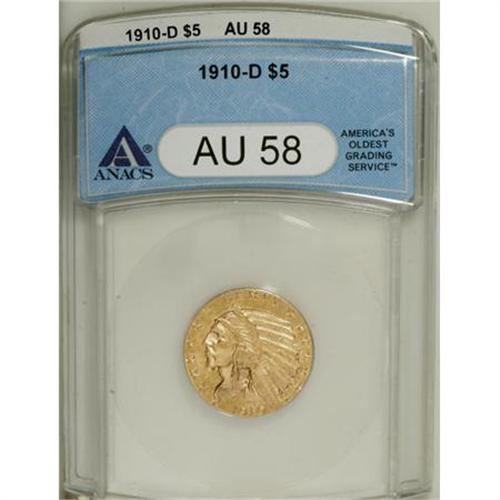 1910-D $5 AU58 ANACS. NGC Census: (107/469). PCGS