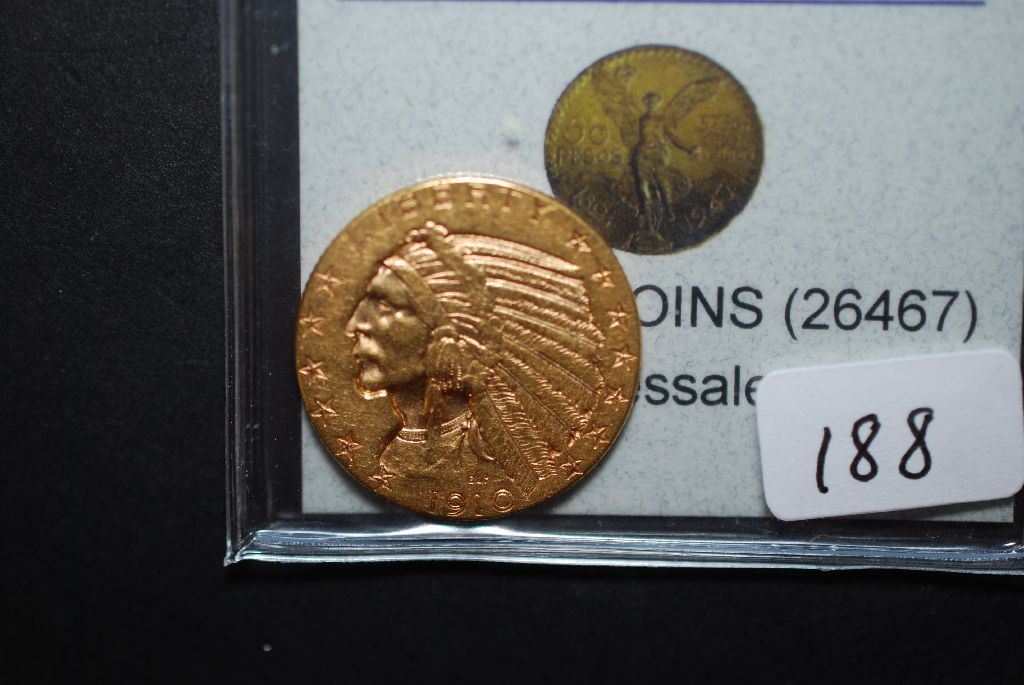 1910-D US Indian Chief $5 Gold Coin; EST. $550-600