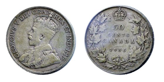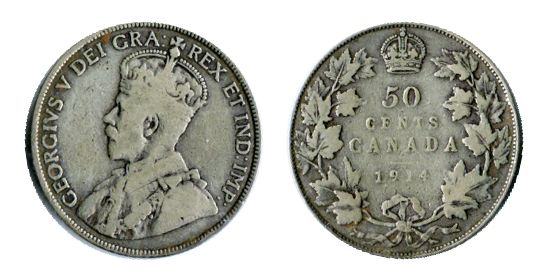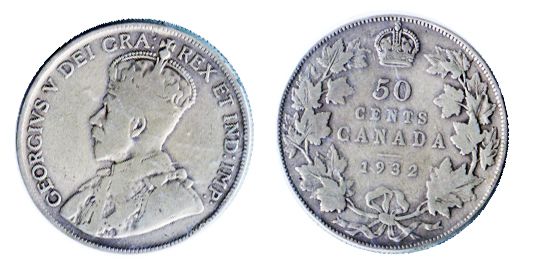 1910. Ed. Lvs. Fine-15; 1914, 1931, 1932, 1934, 1936. Lot of five (5) coins, average VG-8 or better. Total of six (6) fifty cents pieces.