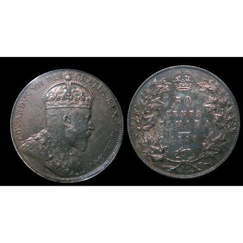 1910 Edwardian leaves 50¢ ICCS MS63, a super Mint State example. Intense autumn shades.