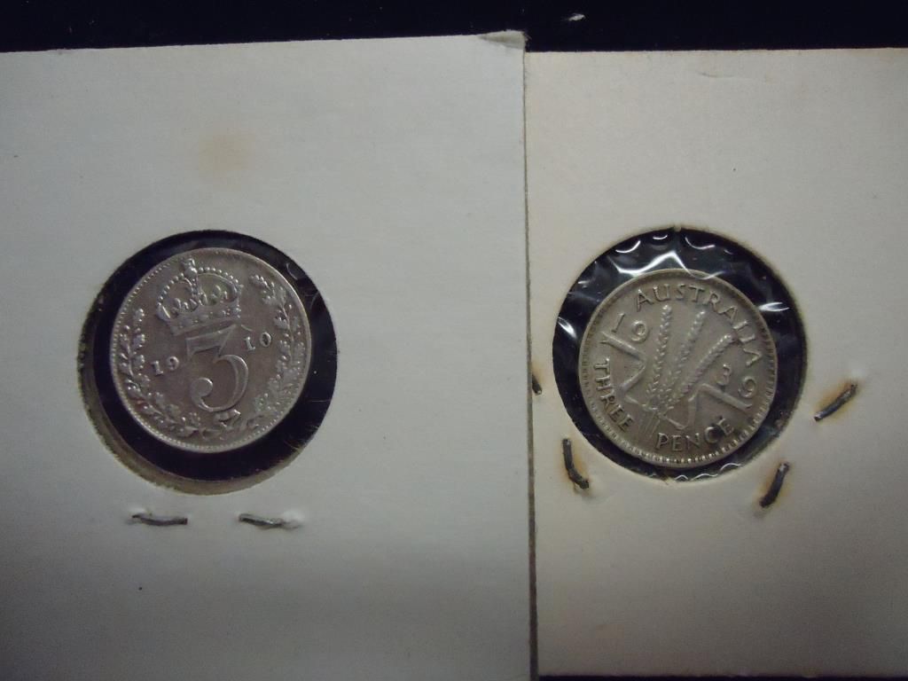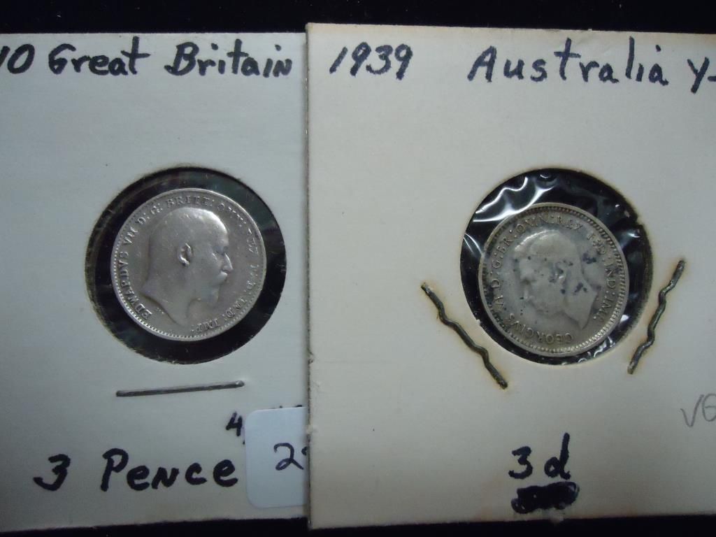 1910 GREAT BRITAIN & 1939 AUSTRALIA SILVER 3 PENCE