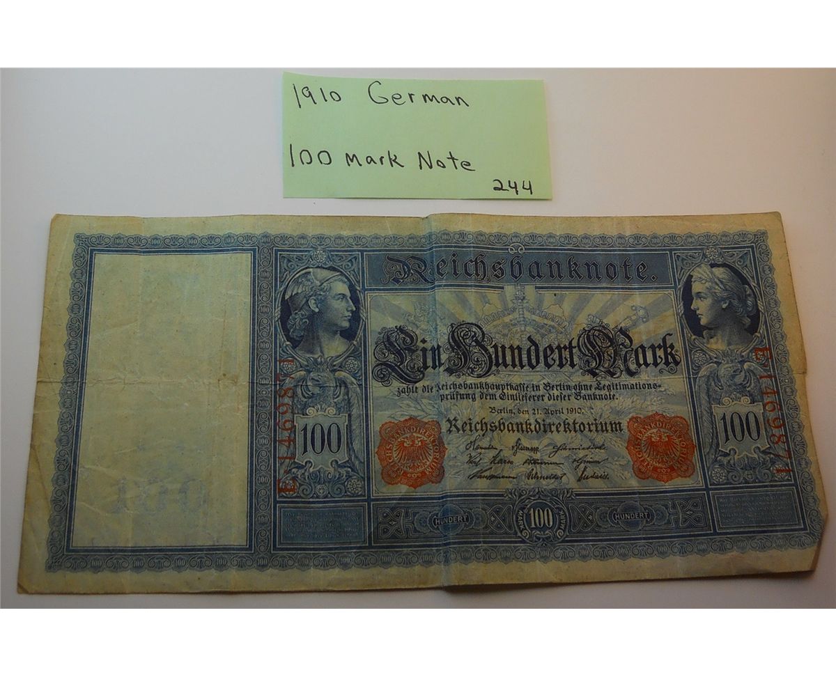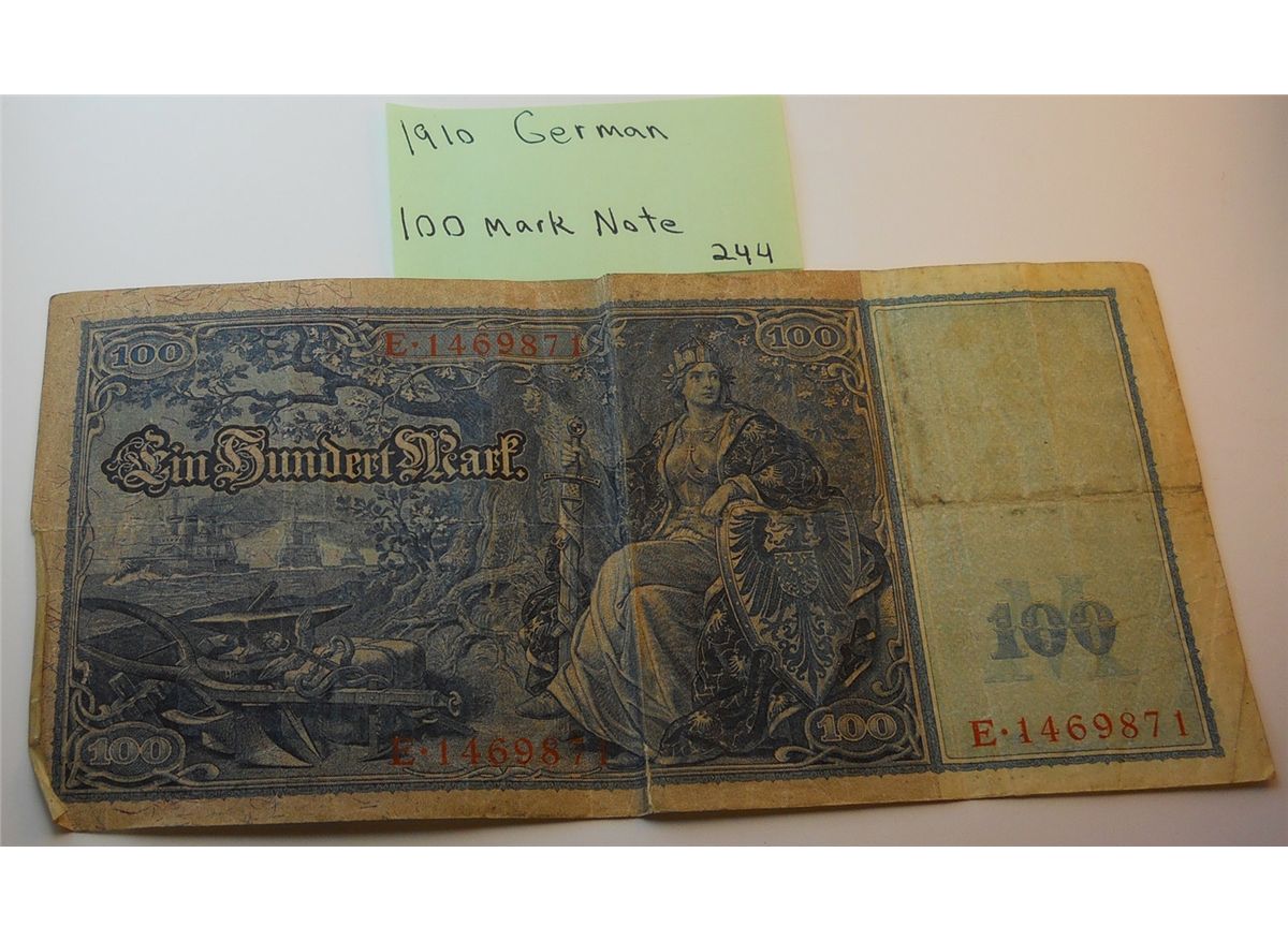 1910 German 100 Mark Note *Beautiful* ***Coin, Currency & All Items Listed in this auction - Grades, Conditions and Values are not Safe Deposit Coins LLC Responsibilty. Grades, Condition and Values are determined by Consigner(s) & Buyers ONLY***