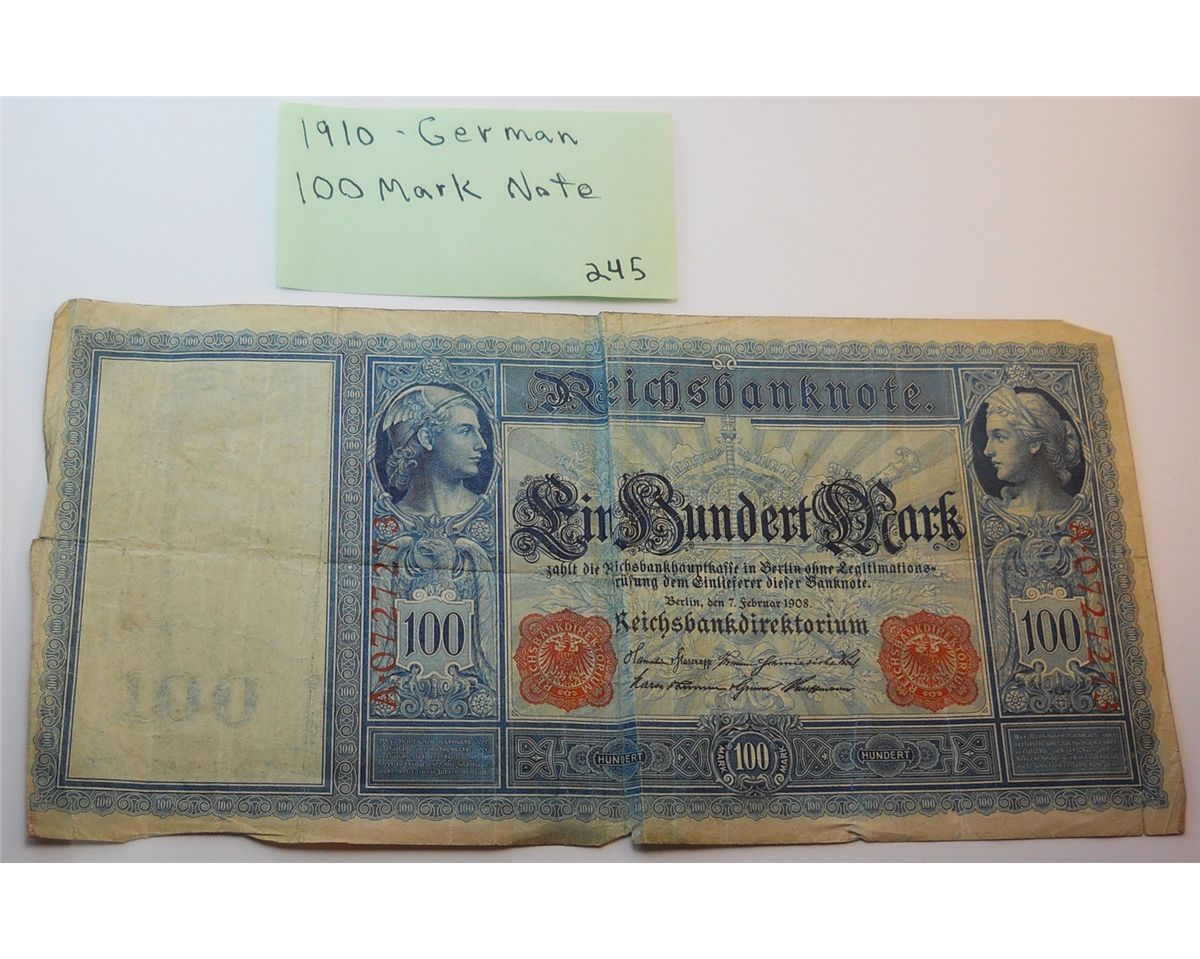1910 German 100 Mark Note *Beautiful* ***Coin, Currency & All Items Listed in this auction - Grades, Conditions and Values are not Safe Deposit Coins LLC Responsibilty. Grades, Condition and Values are determined by Consigner(s) & Buyers ONLY***