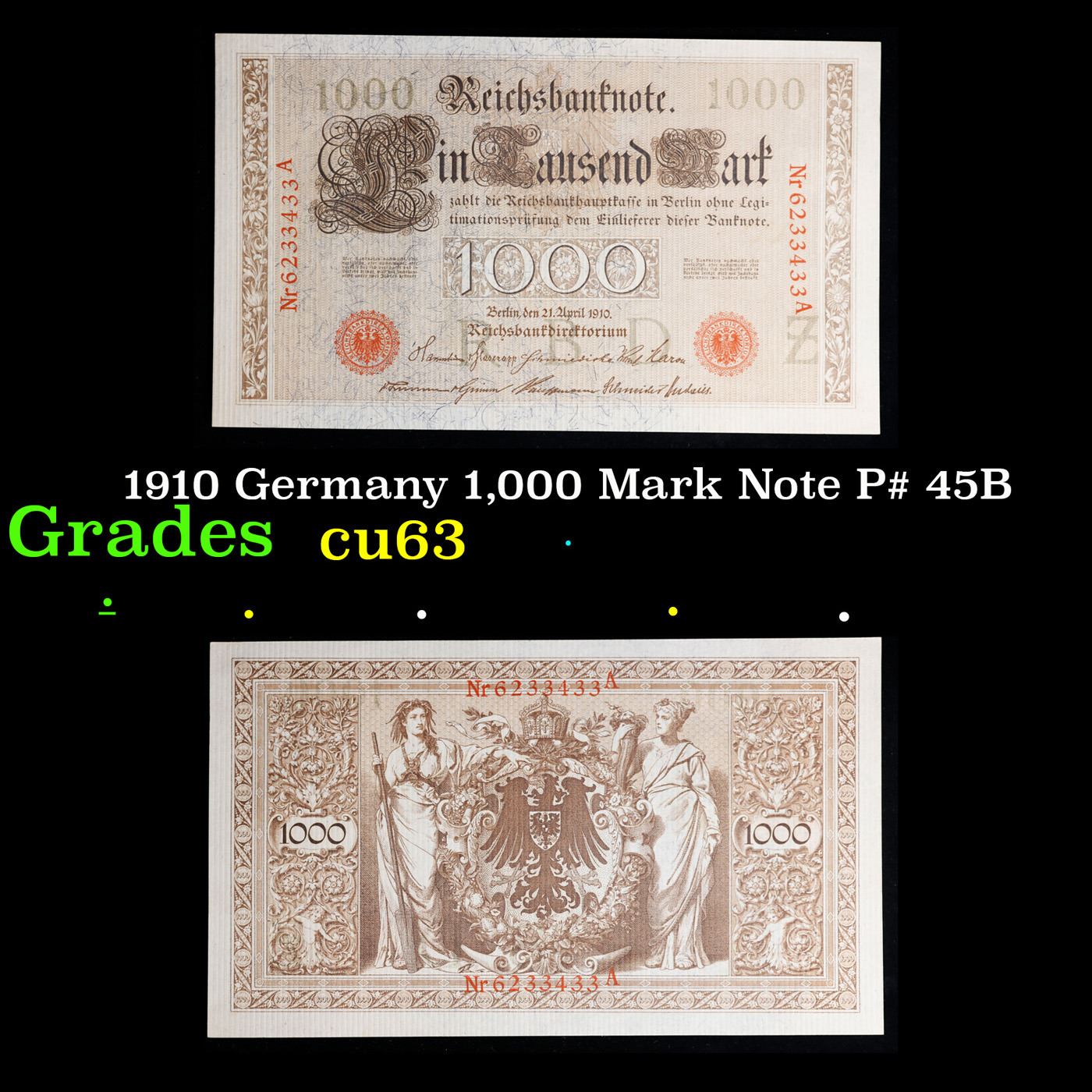 1910 Germany 1,000 Mark Note P# 45B Grades Select CU